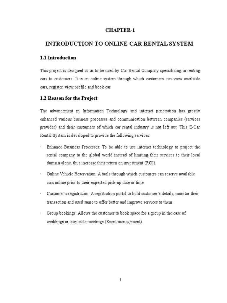 To be able to use internet technology to project the rental company to the global world instead of limiting their services to their local domain alone, thus increase their return on investment (roi). Report is available in doc and pdf format. How to download car rental portal project report? Jan 11, 2019 · the car rental system management report in mca project that had been develop is going to be. Which is project presentation on online car rental system? Report is downloadable after payment made successful. See full list on partheniumprojects.com What do i need to know about car rental system? It is an online system through which customers can view available. Cars, register, view profile and book car. This project is designed so as to be used by car rental company specializing in renting. Apr 01, 2018 · car rental system serves people who don't own a car, who are out of town or owners of damaged cars who are awaiting repair or insurance compensation. Double generate () confirm print () save () pay () confirm () figure 8.1 class diagram of online car rental system
